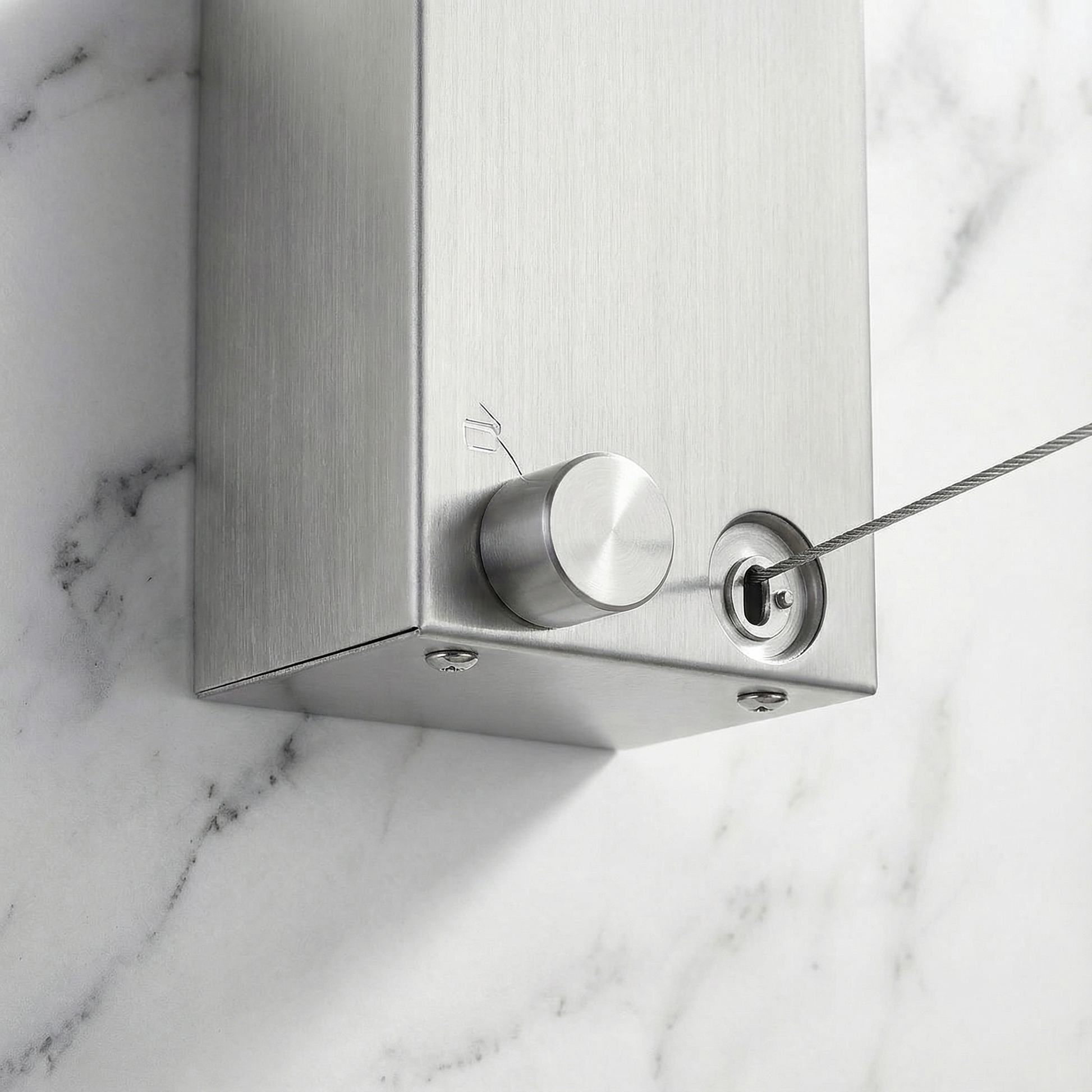 Se fija a la pared en pocos pasos, sin herramientas complicadas. Bloqueo integrado para mantener el cable firme y estable.